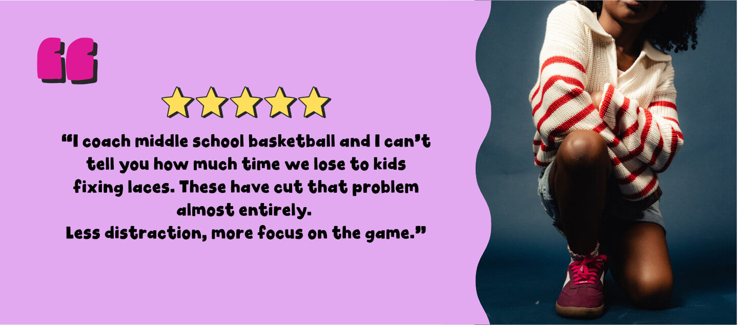 For kids who never slow down, BRCĒ Kids Laces resist untying through practice, play, and every sprint from the indoor courts to the muddy fields.
